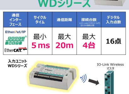 新商品のご紹介 12月新商品紹介 CKD特集その4 CKD WDのご紹介です。 生産設備の通信を無線化することで、スマートな製造現場を実現するための入力ユニットです 。 主な導入メリット 無線化によって、従来の有線接続における課題を解決します 。 配線施工時間の短縮: 物理的な配線作業を大幅に減らせます 。 メンテナンス性の向上: 断線リスクがなくなり、保守点検の工数を削減できます 。 設備の最適化: 機器の軽量化や構成の簡素化(スッキリとした配置)が可能です 。 詳細を見る